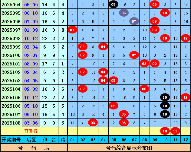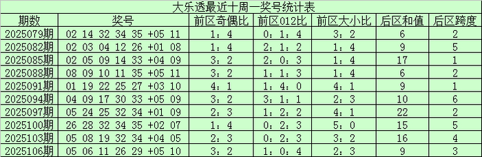 后区分析:上期后区奖号为03+06,开出全小组合,上周一后区奖号开出05+10,最近十周一后区奖号大小比为9:11,大小 号码走势基本相当,本周一看好大号转热,防全大,参考两码10、11。