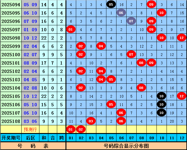 后区分析:上期后区为一奇一偶号码03+06,最近10期后区号码奇偶比为5:15,最近50期后区奇偶比为48:52,本期后区参考一奇一偶组合,关注两码01、02。