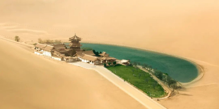 茫茫沙海之中,一弯清泉形如月牙,千百年来不被流沙掩埋,堪称自然奇迹。