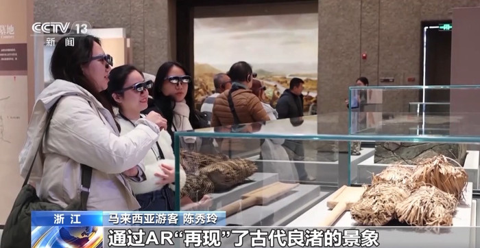 在浙江,这两天,来自马来西亚的游客们走进良渚博物院参观。戴上AR导览眼镜,全息文物影像随即在眼前呈现,通过手势交互还能与文物“隔空互动”,让千年文明变得鲜活可感。
