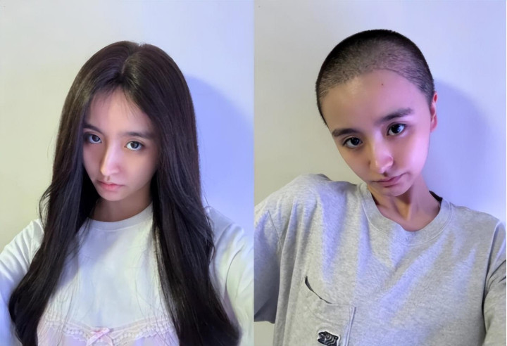 曾在节目里被伊能静夸拥有一头的漂亮头发,现在直接被剃光了,