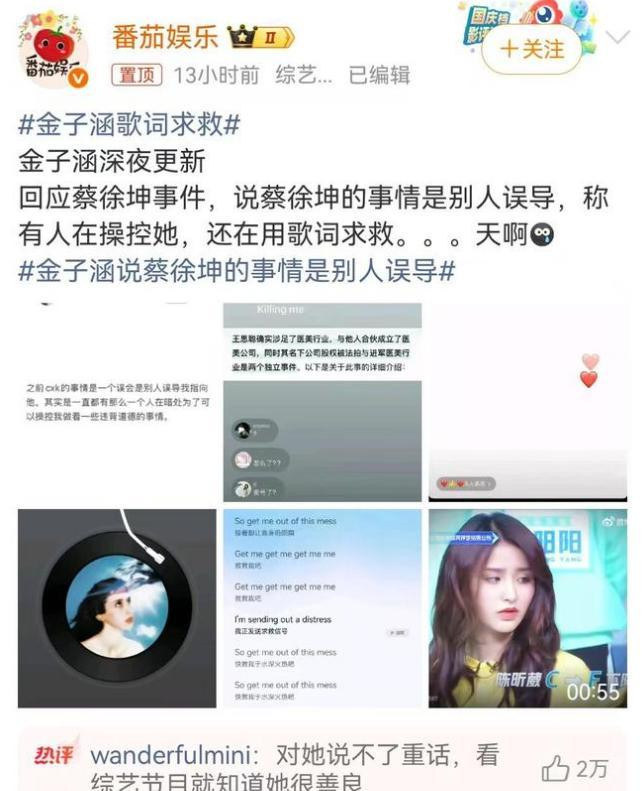 三月份的时候,她又发文澄清,表示拉黑蔡徐坤是被误导。