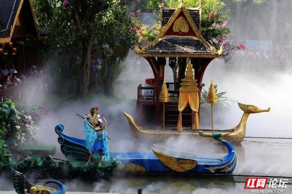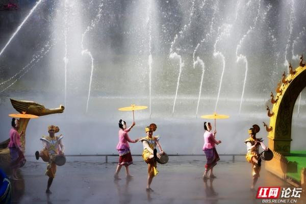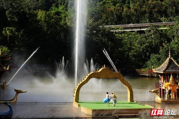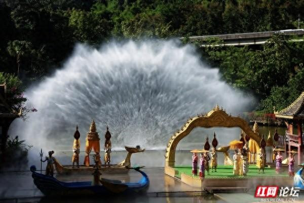 踩进西双版纳的风里,热带草木的潮气裹着傣家竹楼的金饰香。水上舞台的喷泉炸开白浪,演员踩着雕花木舟,裙摆蹭过水花时,像把澜沧江的波纹缝在了衣摆上。